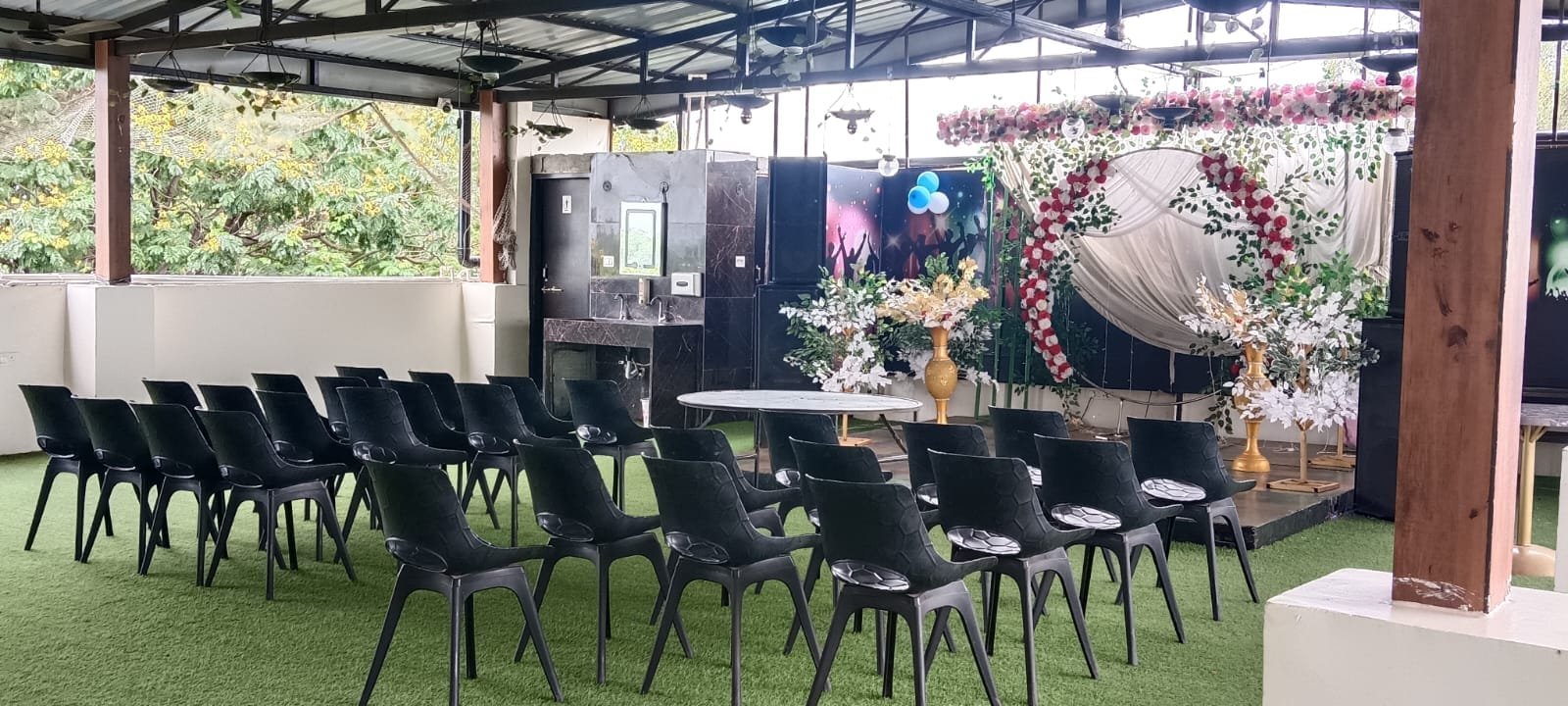 The Marriage Garden at Hotel Vatika Palace offers a beautifully landscaped, spacious outdoor venue, perfect for weddings and grand celebrations, combining natural charm, elegant décor, and warm hospitality for unforgettable moments.
